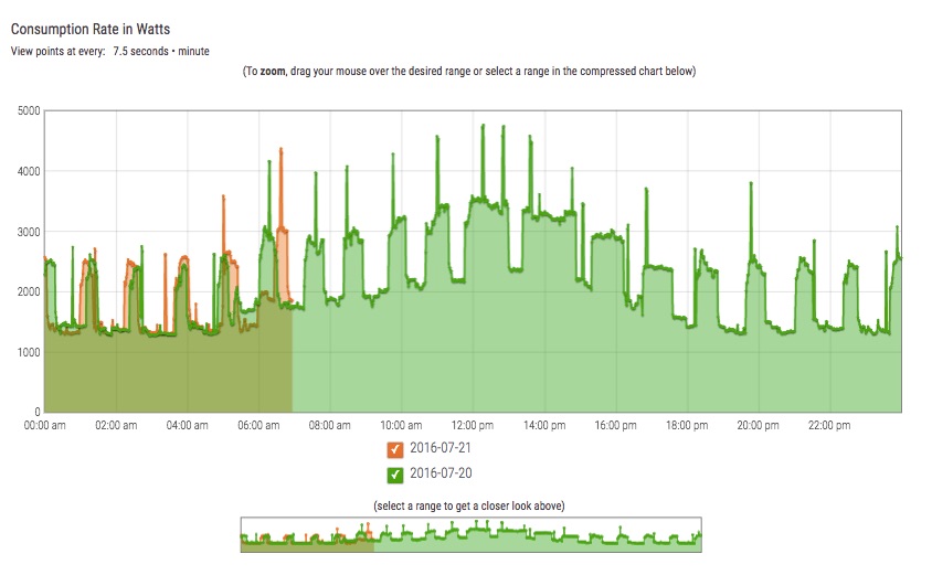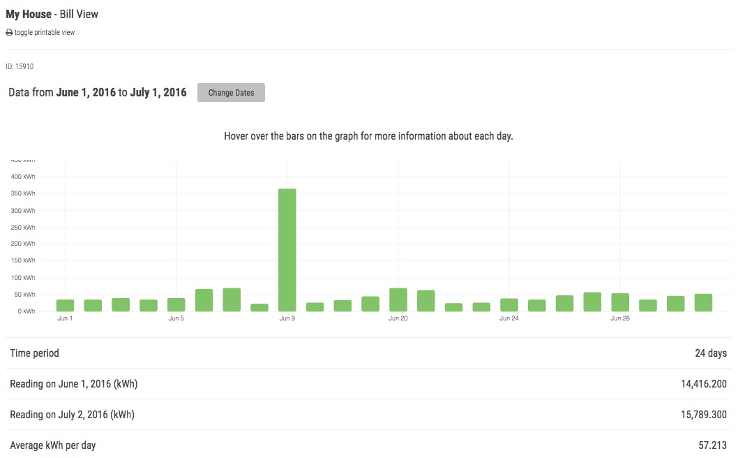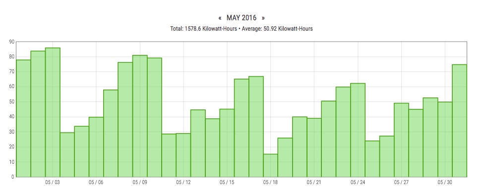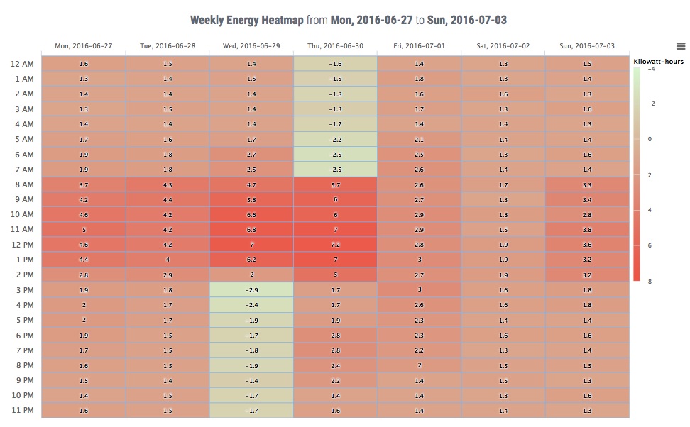 View your energy usage in a heat-map format to easily see your most and least efficient days.